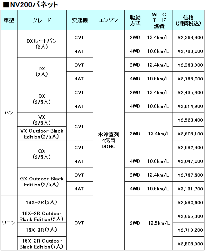 2025年11月7日、日産自動車株式会社は「NV200バネット」を一部仕様向上と新グレード「Outdoor Black Edition」を新たに設定、2025年12月15日から発売すると発表しました。尚、「NV200バネット MYROOM」の仕様向上の詳細は12月中旬の発表を予定となっています。