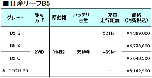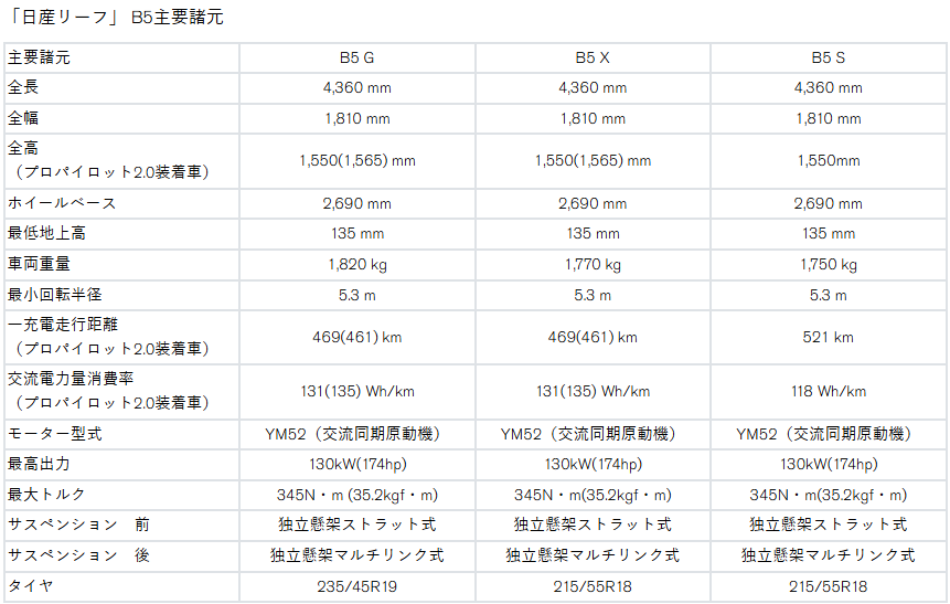 55kWhバッテリー搭載した新型日産「リーフB5」注文受付開始!!解説