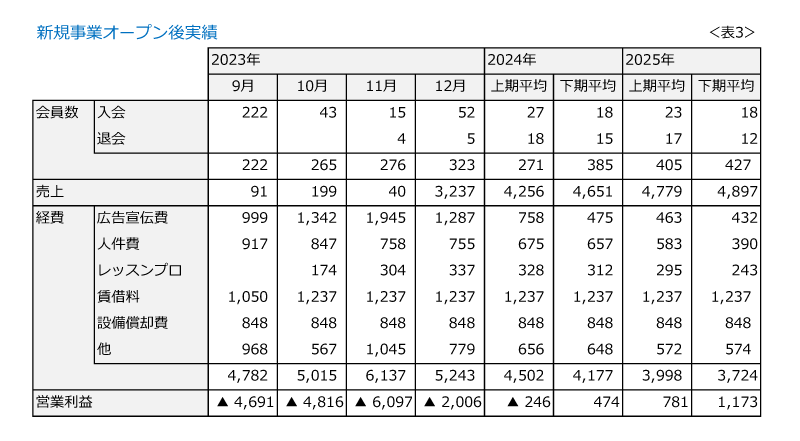 23年12月から売上(会費)が発生します。翌年3月には単月で黒字となりました。オープン7カ月目です。