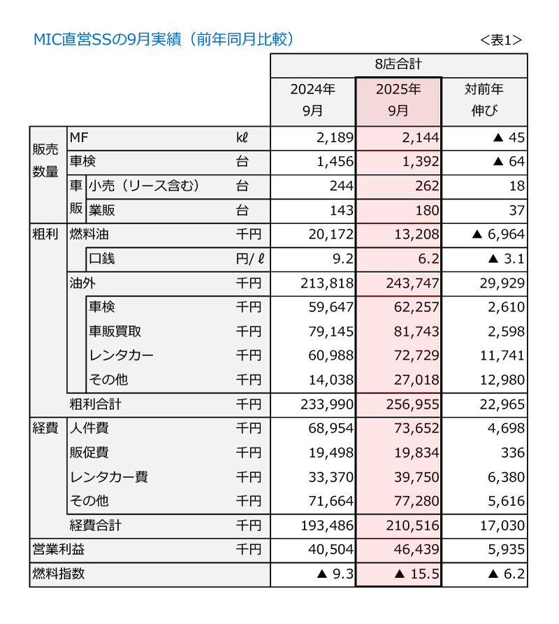 これだけ猛暑日が続いても油外需要は堅調で、SSのスタッフたちはしつかり応えてくれました。燃料油が700万円減少し、経費が1,700万円上がったにもかかわらず、油外は3,000万円改善の2.4億円となり、しつかりカバーしてくれました。