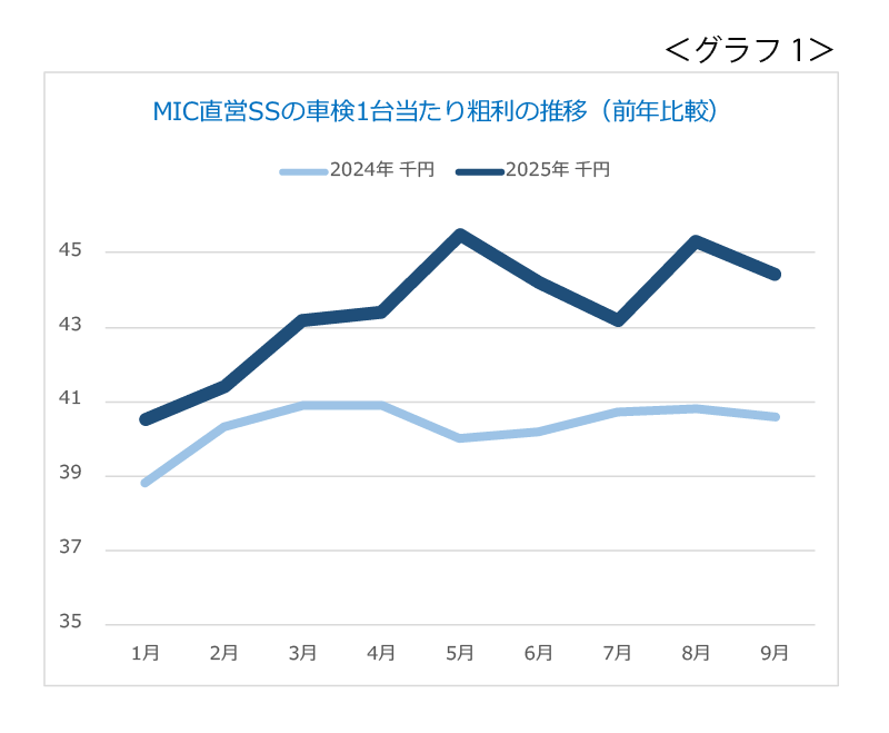 車検の入庫台数は減少しましたが、粗利は伸びました。客単価が上がったからです(グラフ1) 。