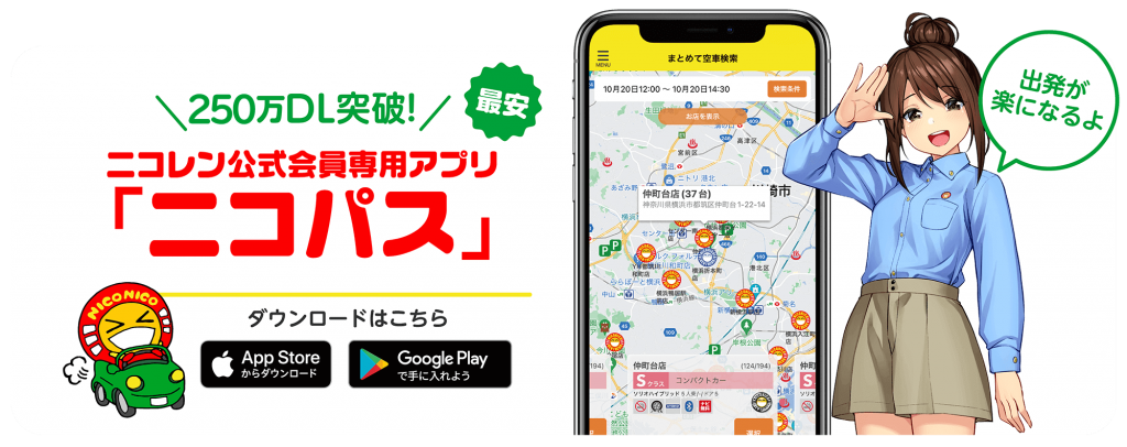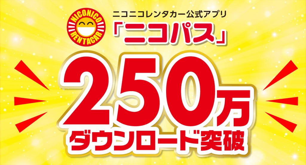 このたび、ニコニコレンタカー公式アプリ「ニコパス」の累計ダウンロード数が、250万DLを突破しました。