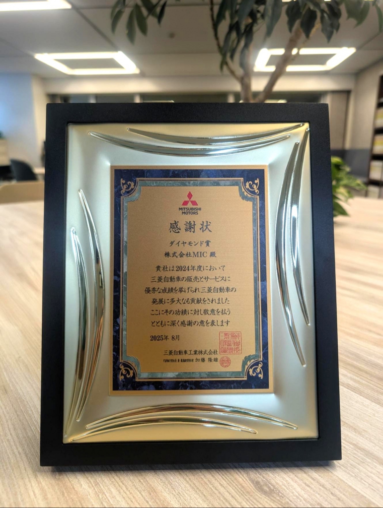 この度当社は、三菱自動車工業株式会社より 「2024年度 ダイヤモンド賞」 を受賞し、感謝状を授与されました。
